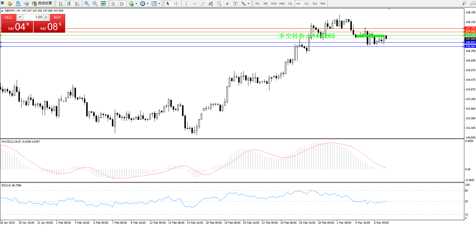 交易策略:147.265下方看跌,目标146.821146.567