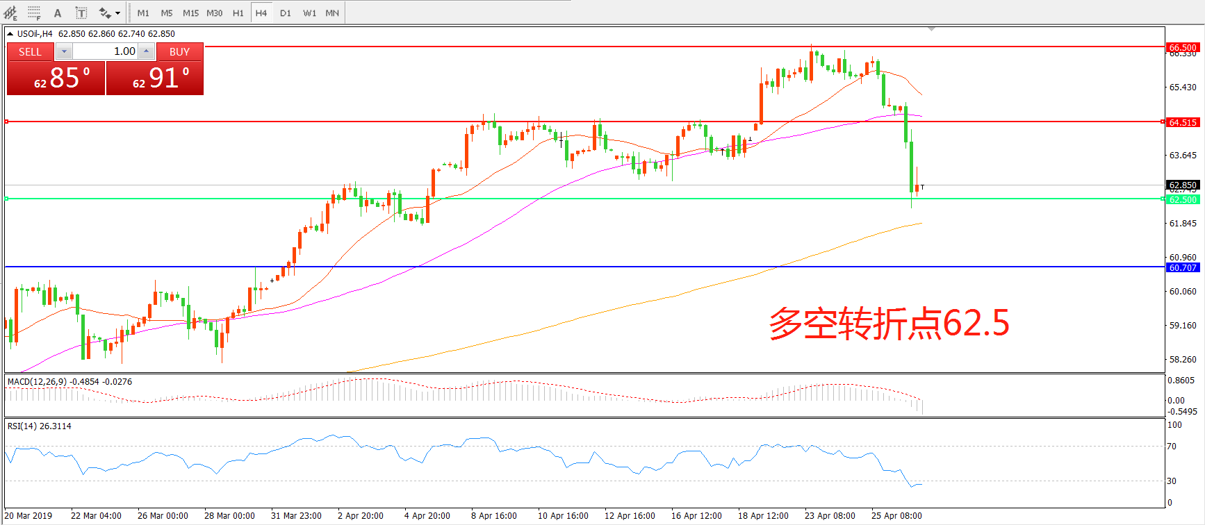 多空转折点:62.50