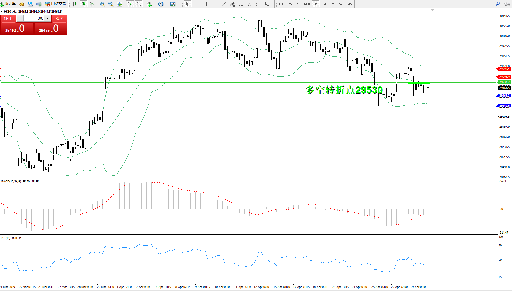 劳动节假期结束,节前中国制造业PMI不及预期,中国内地股市全天基本在平盘线上方震荡。香港恒生指数早盘低开低走,随后维持低位盘整,截至收盘,恒指跌0.65%,报29699.11点。美国4ADP就业人数达27.5万人,大幅好于预期,服务业就业人数增幅为逾两年来最大。今天凌晨美联储决议声明:将在货币政策上保持耐心,维持联邦基金利率目标区间不变、维持贴现利率在3%不变。美国经济活动按稳固的速度增长,劳动力市场表现强劲。就业人口一直在稳健地增长,失业率保持在低位。