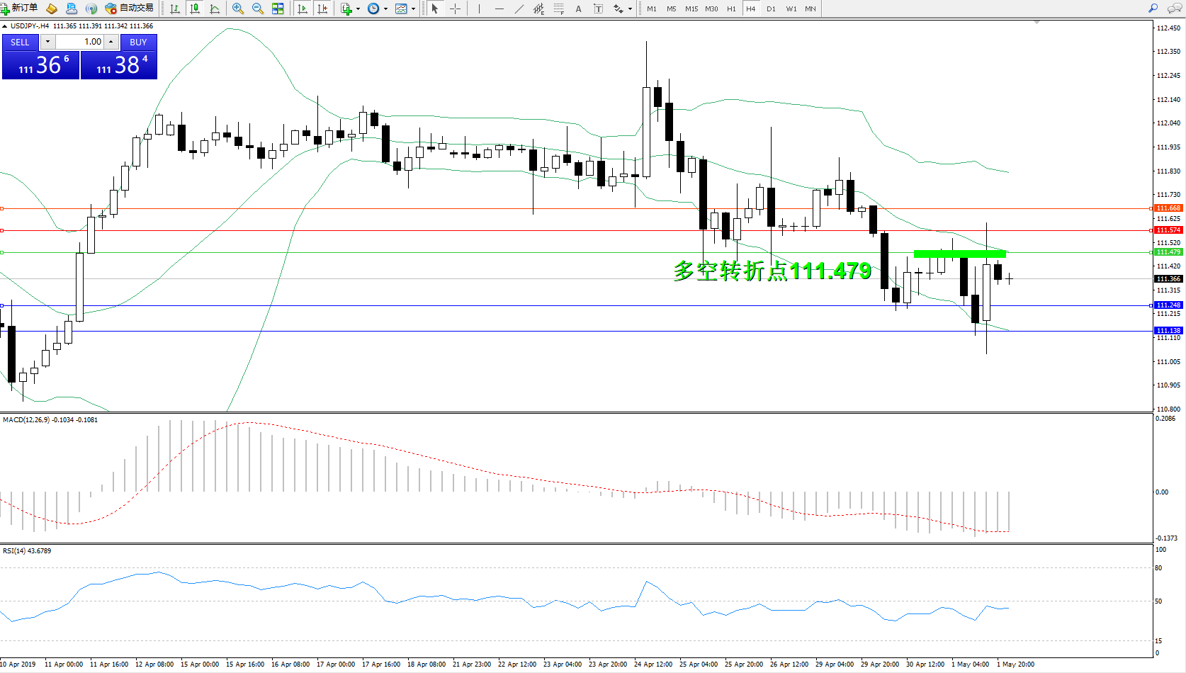 交易策略:111.479下方看跌,目标111.248111.138