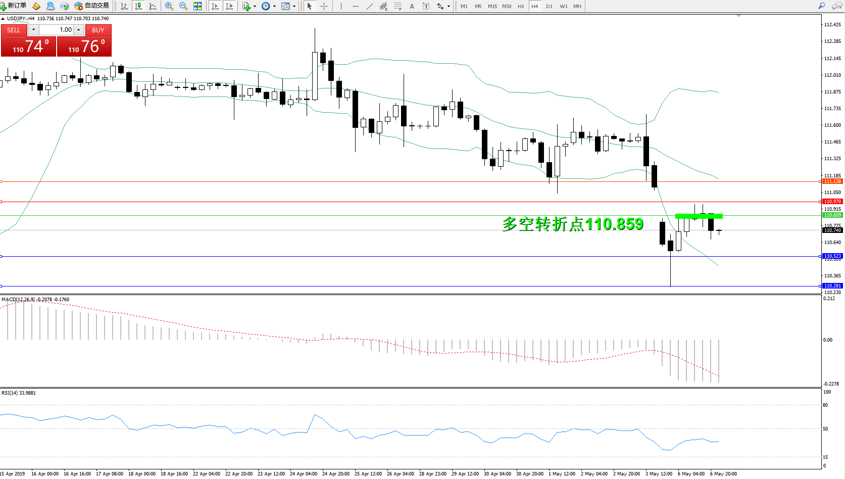 交易策略:110.859下方看跌,目标110.523110.281