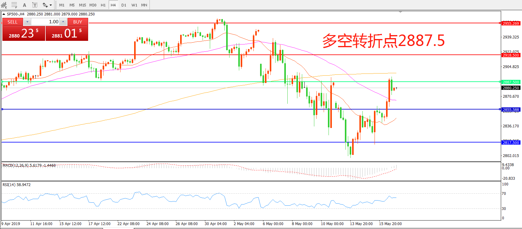 多空转折点:2887.50