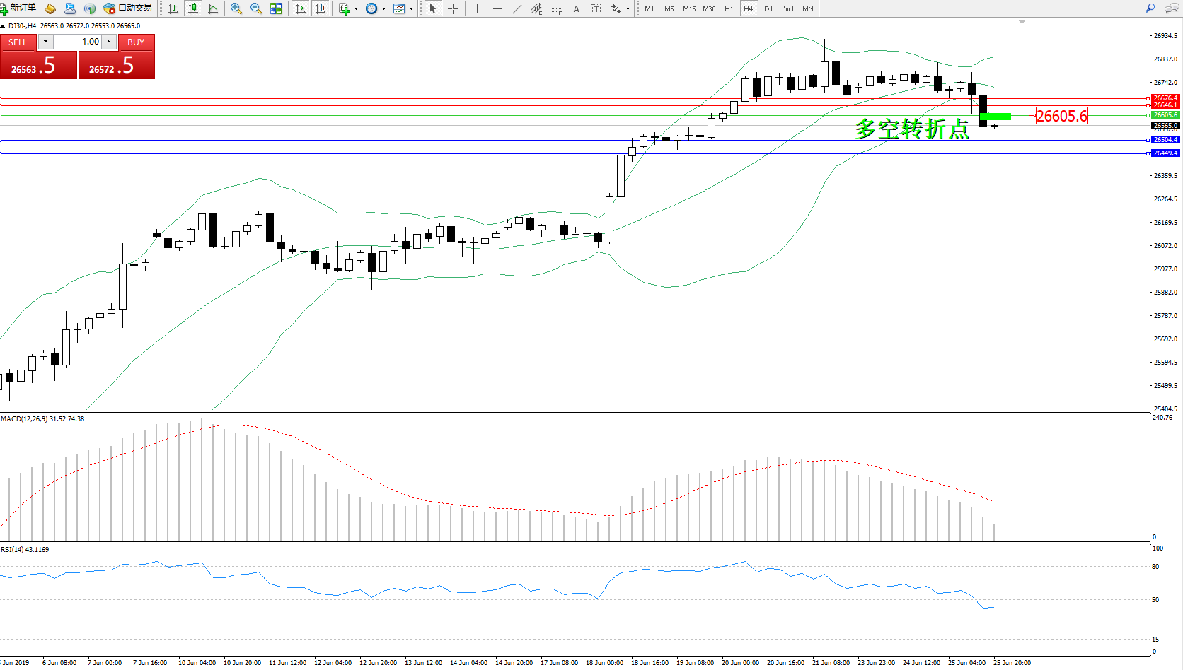 交易策略:26605下方看跌,目标26504、26449
