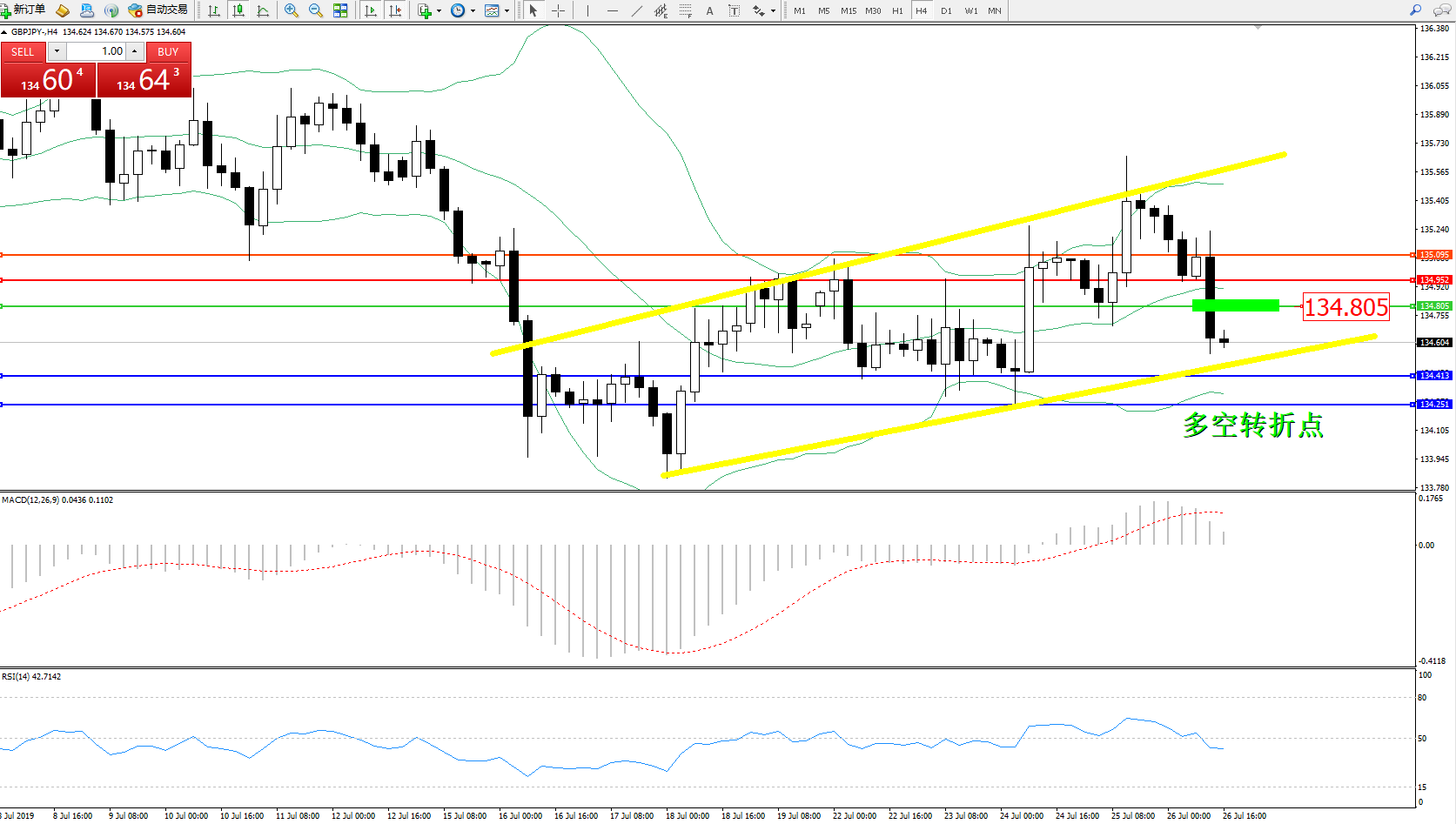 交易策略:134.805下方看跌,目标134.413、134.251