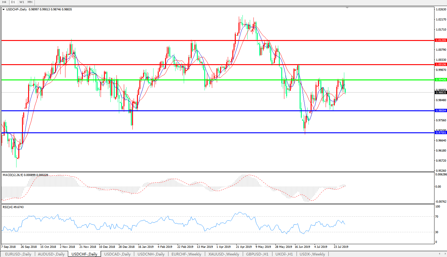 美元兑瑞郎USDCHF   日线图: