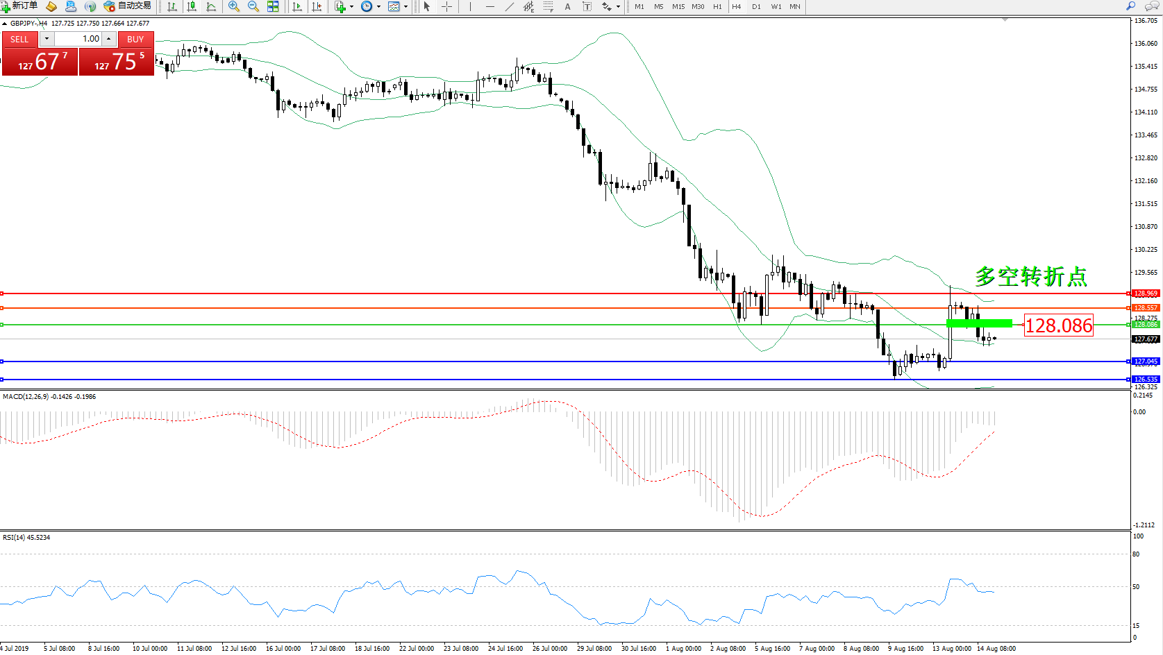 交易策略:128.086下方看跌,目标127.045126.535