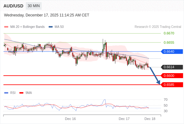 在 0.6640 之下,看跌,目标价位为 0.6600 ,然后为 0.6585 。