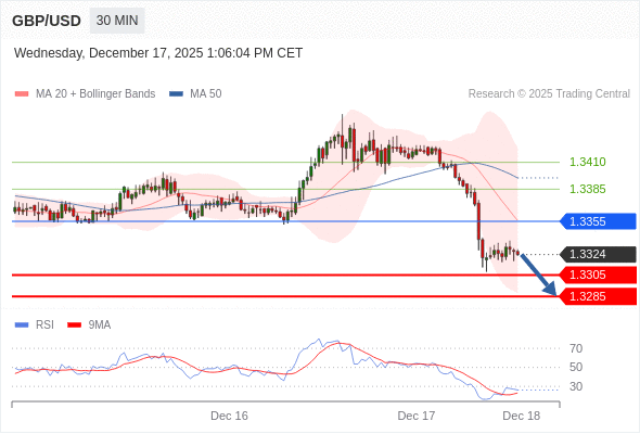 在 1.3385 之下,看跌,目标价位为 1.3305 ,然后为 1.3285 。