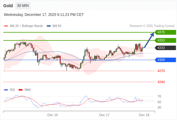 在 4300 之上,看涨,目标价位为 4353 ,然后为 4375 。