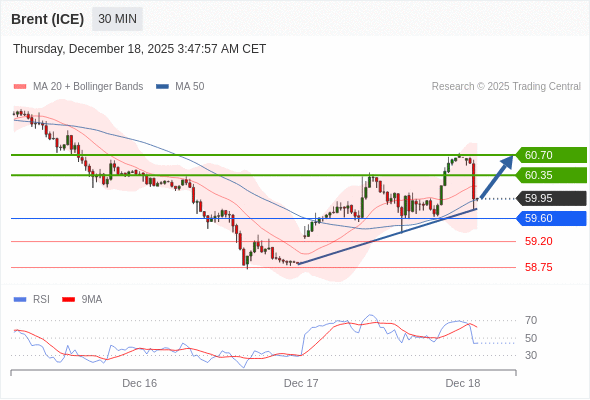 在 59.60 之上,看涨,目标价位为 60.35 ,然后为 60.70 。