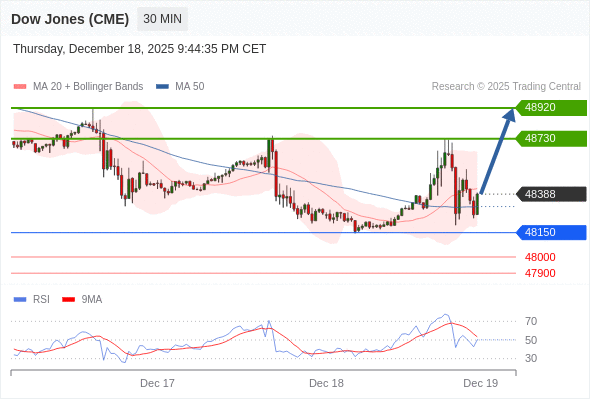 在 48150 之上,看涨,目标价位为 48730 ,然后为 48920 。