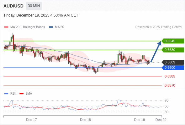 在 0.6600 之上,看涨,目标价位为 0.6630 ,然后为 0.6645 。