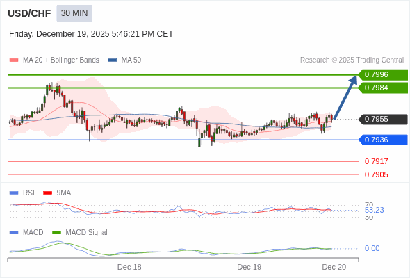 美元/瑞郎 当日内 : 看涨,当 0.7936 为支撑位。