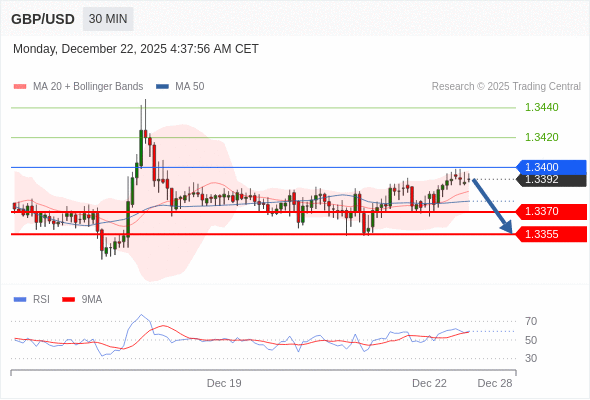 交易策略: 在 1.3400 之下,看跌,目标价位为 1.3370 ,然后为 1.3355 。