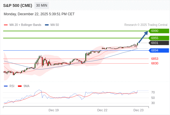 在 6894 之上,看涨,目标价位为 6955 ,然后为 6990 。
