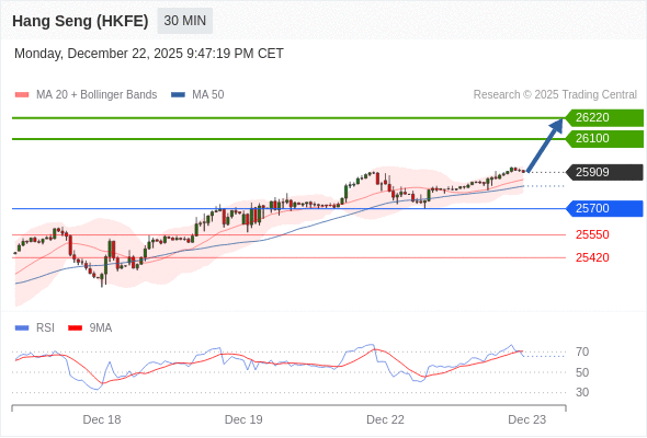 在 25700 之上,看涨,目标价位为 26100 ,然后为 26220 。