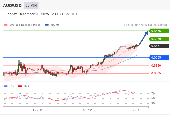 在 0.6635 之上,看涨,目标价位为 0.6670 ,然后为 0.6685 。