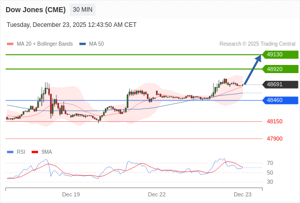在 48460 之上,看涨,目标价位为 48920 ,然后为 49130 。