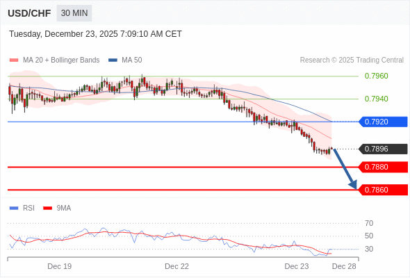 在 0.7920 之下,看跌,目标价位为 0.7880 ,然后为 0.7860 。