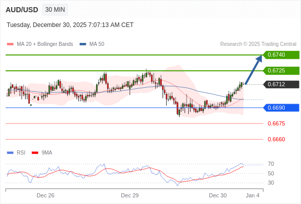 在 0.6690 之上,看涨,目标价位为 0.6725 ,然后为 0.6740 。