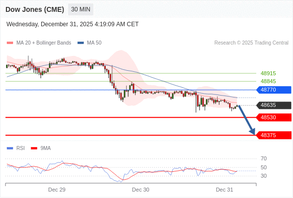 在 48770 之下,看跌,目标价位为 48530 ,然后为 48375 。