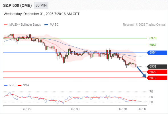 在 6954 之下,看跌,目标价位为 6922 ,然后为 6912 。
