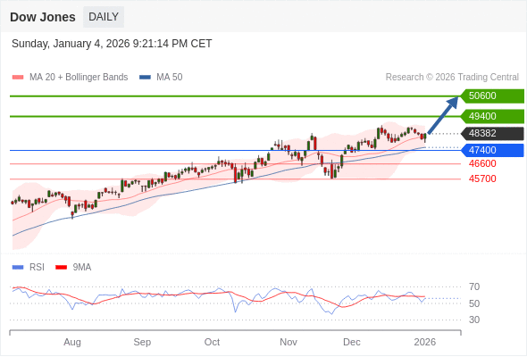 在 47400 之上,看涨,目标价位为 49400 ,然后为 50600 。