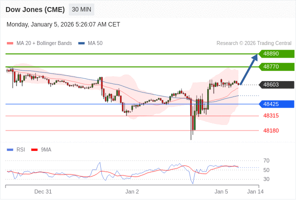 在 48425 之上,看涨,目标价位为 48770 ,然后为 48890 。