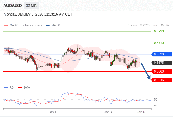 在 0.6690 之下,看跌,目标价位为 0.6660 ,然后为 0.6645 。
