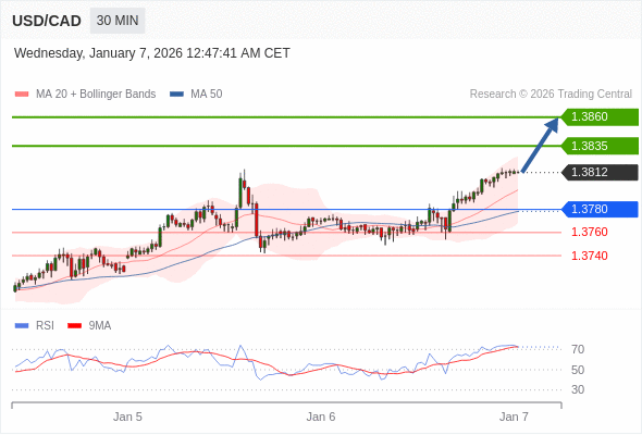 在 1.3780 之上,看涨,目标价位为 1.3835 ,然后为 1.3860 。