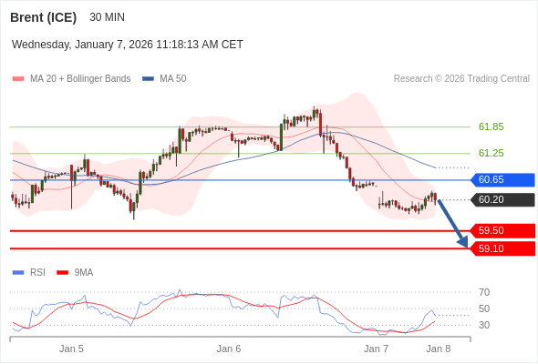 交易策略: 在 60.65 之下,看跌,目标价位为 59.50 ,然后为 59.10 。