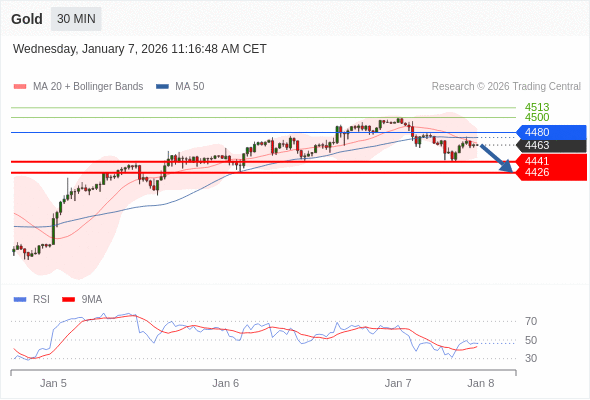 在 4480 之下,看跌,目标价位为 4441 ,然后为 4426 。