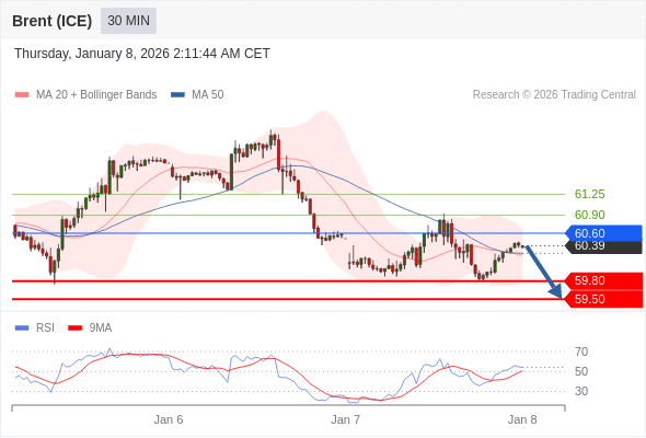 在 60.60 之下,看跌,目标价位为 59.80 ,然后为 59.50 。