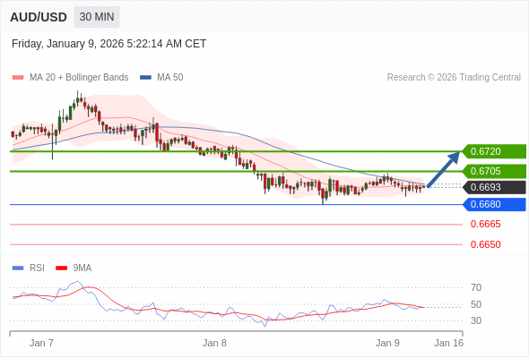 在 0.6680 之上,看涨,目标价位为 0.6705 ,然后为 0.6720 。