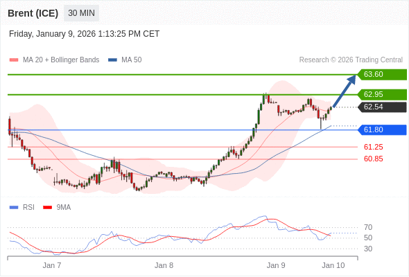 在 61.80 之上,看涨,目标价位为 62.95 ,然后为 63.60 。