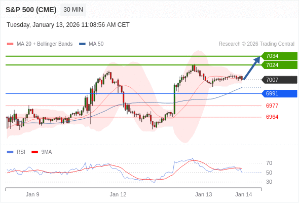 在 6991 之上,看涨,目标价位为 7024 ,然后为 7034 。
