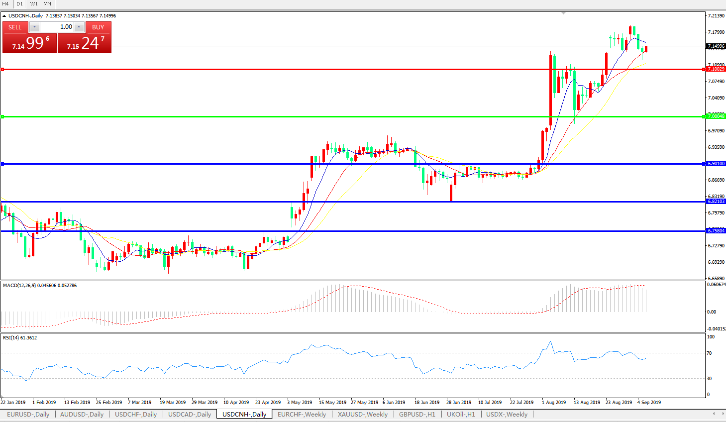 交易策略: 在7.0000之上,看涨,目标价位为7.1000,然后为7.2000。