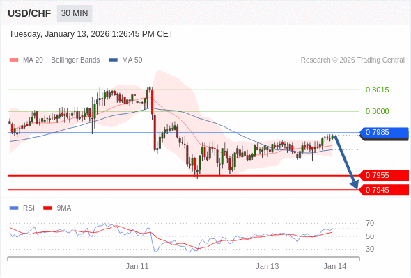在 0.7985 之下,看跌,目标价位为 0.7955 ,然后为 0.7945 。
