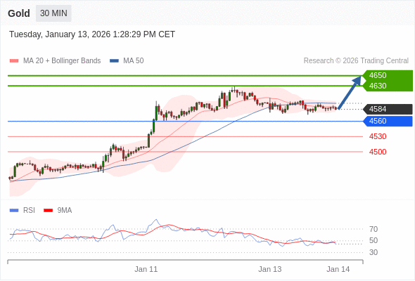 在 4560 之上,看涨,目标价位为 4630 ,然后为 4650 。