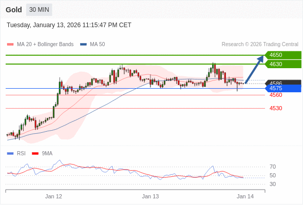 在 4575 之上,看涨,目标价位为 4630 ,然后为 4650 。