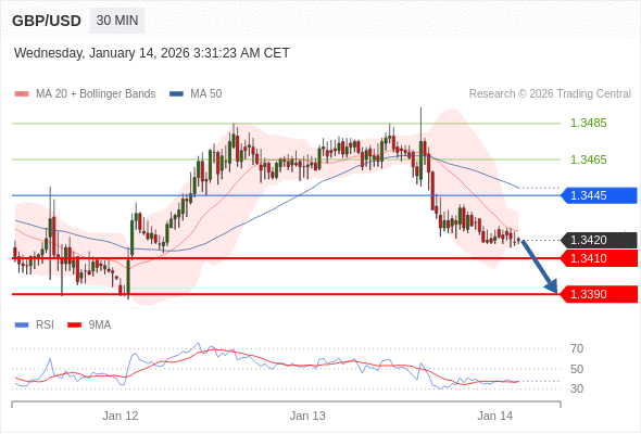在 1.3445 之下,看跌,目标价位为 1.3410 ,然后为 1.3390 。