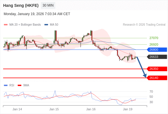 在 26800 之下,看跌,目标价位为 26350 ,然后为 26140 。
