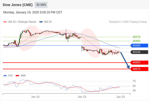 在 49330 之下,看跌,目标价位为 48850 ,然后为 48670 。