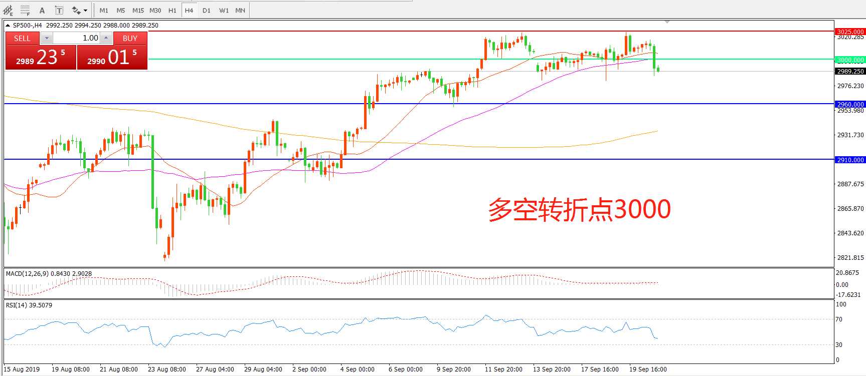 多空转折点:3000.00