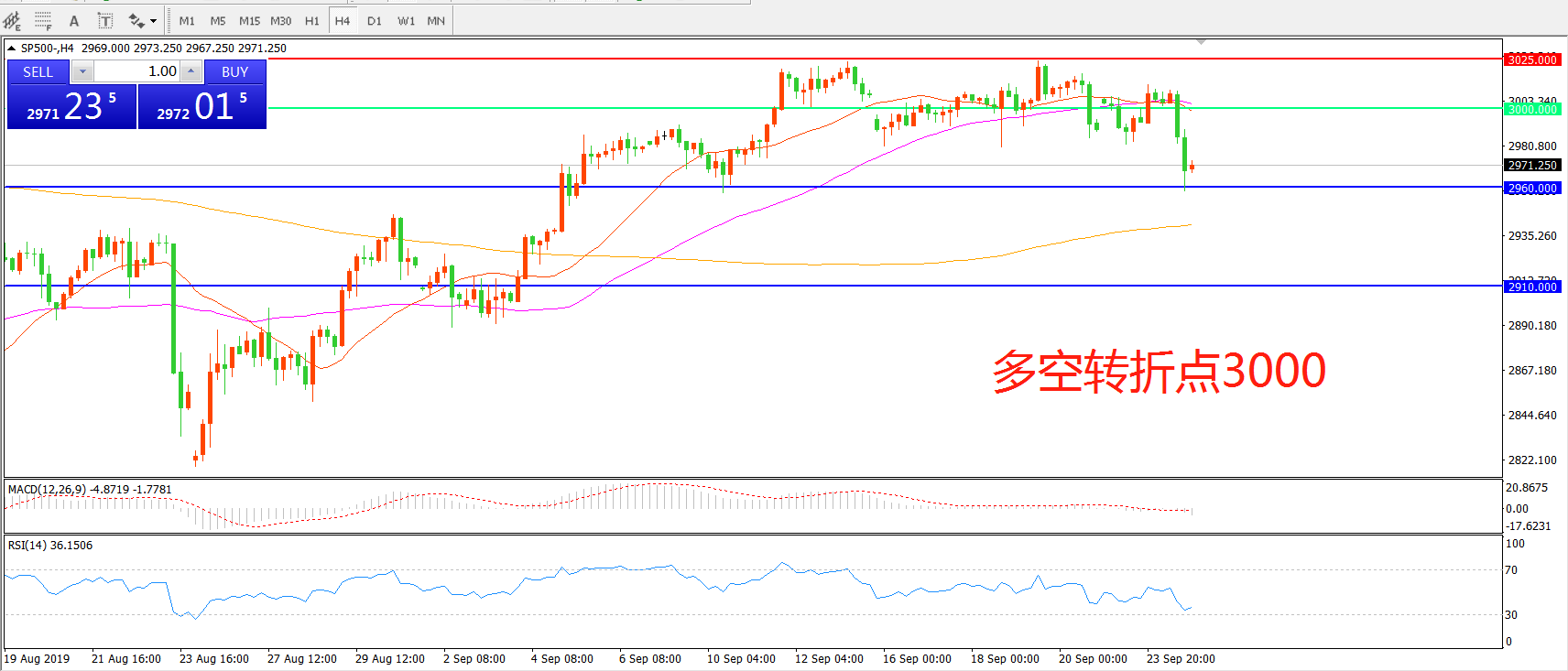 多空转折点:3000.00