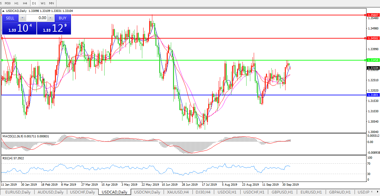 备选策略:1.3345之上,看涨,目标价位为1.3450,然后为1.3560。