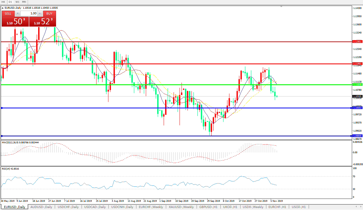 交易策略:1.1100下方看跌,目标1.1000、1.0880