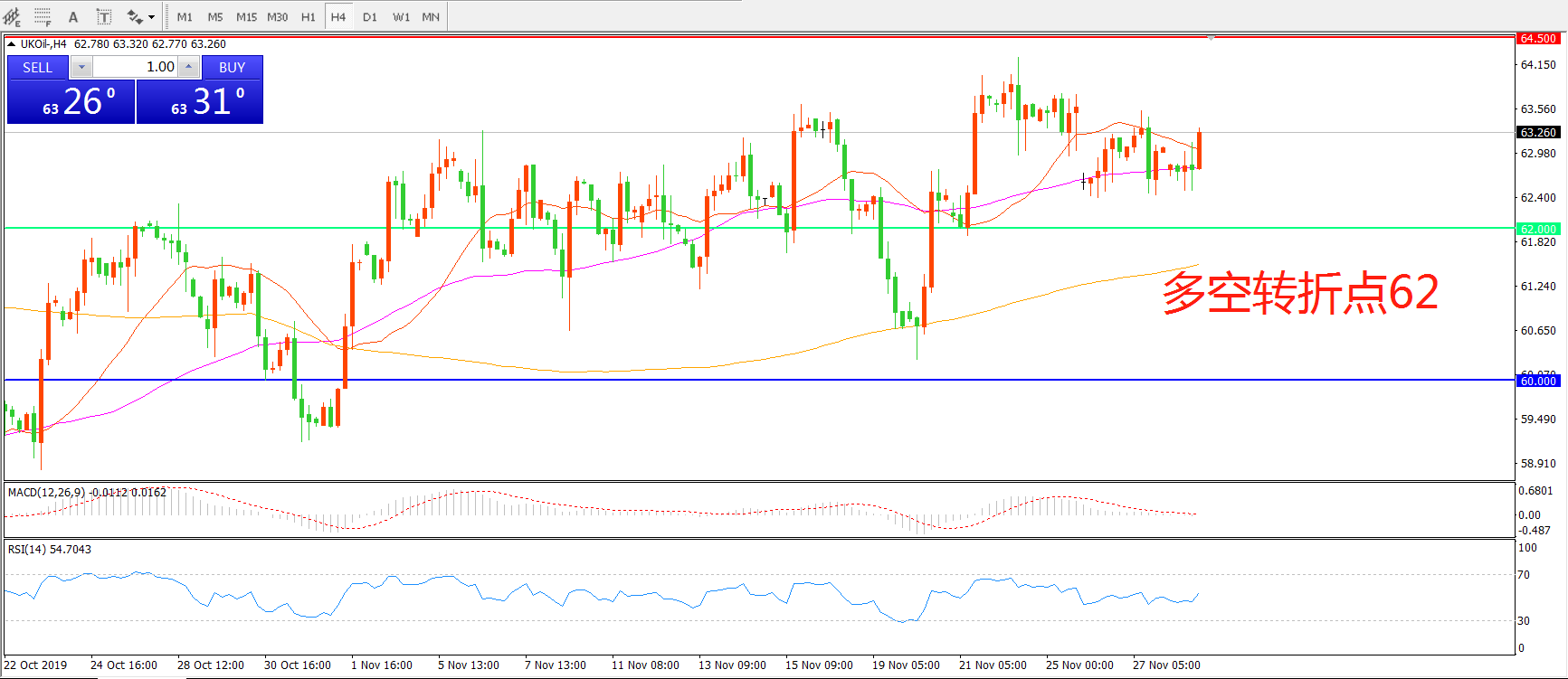 多空转折点:62.00