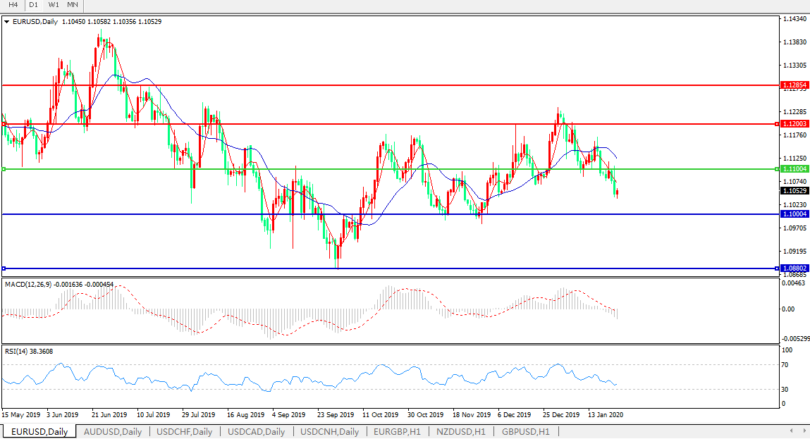技术面简析:日图均线呈有序空头排列,汇价持续承压1.11关口,MACD下穿0轴且量能0轴下方继续放量 ,RSI缓步走低,预计短期汇价大概率将进一步走低。