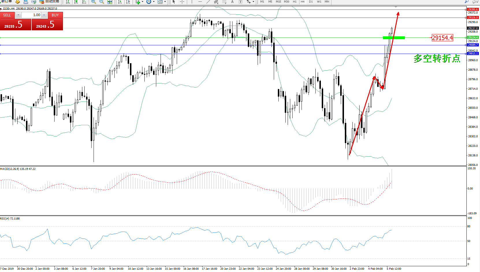 交易策略:29154上方看涨,目标29326、29395